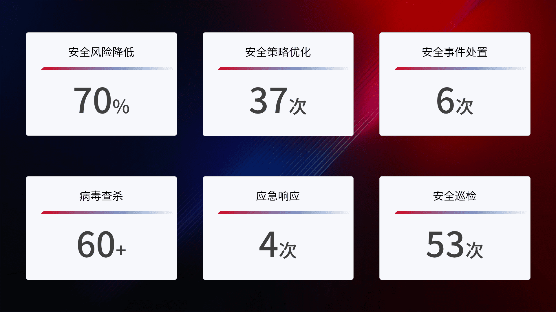 提供全面的安全事件报告体系,,,包括处置报告、、、、周报、、季度和年度总结,,,结合持续监控,,帮助客户深入了解网络安全状况。。